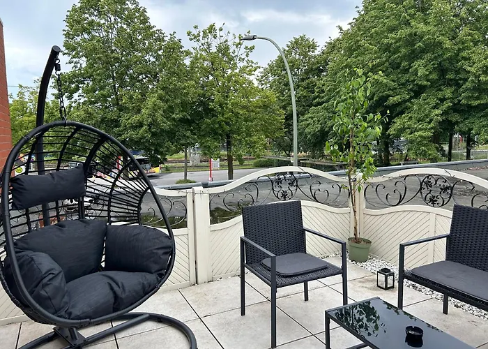 Superior - Central Rooftop - 20Min To Hamburg van 60 m^2 is op slechts 5 minuten lopen van het Industriemuseum en op 35 km van de luchthaven Hamburg. Het 1-slaapkamer appartement is voorzien van een terras met uitzicht over de stad.